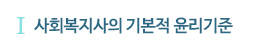 1) »çȸº¹Áö»ç´Â ÀαÇÁ¸Áß°ú Àΰ£ÆòµîÀ» À§ÇØ Çå½ÅÇØ¾ß Çϸç, »çȸÀû ¾àÀÚ¸¦ ¿ËÈ£ÇÏ°í ´ëº¯ÇÏ´Â ÀÏÀ» ÁÖµµÇØ¾ß ÇÑ´Ù.